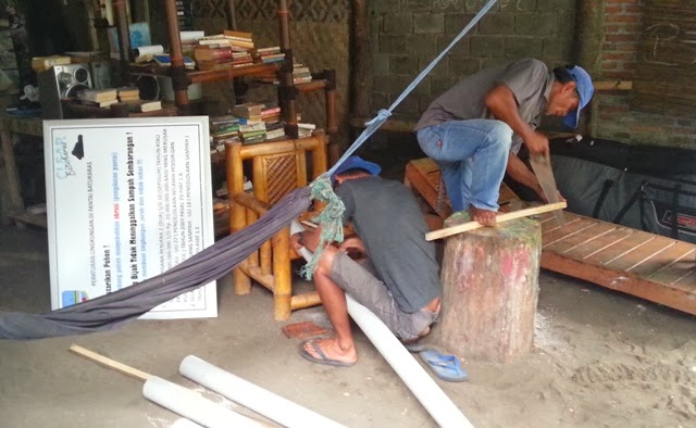 Mang Asep, Mang Ucu, Demsix and Mondol helped to put up 5 signs on the beaches around Batukaras. The signs give rules for keeping the beach clean and preserving trees and plants along the coast…. and inform people of relevant laws and penalties. This idea was proposed by local residents and became a collaboration between local residents, Government agencies and CLEAR Community.